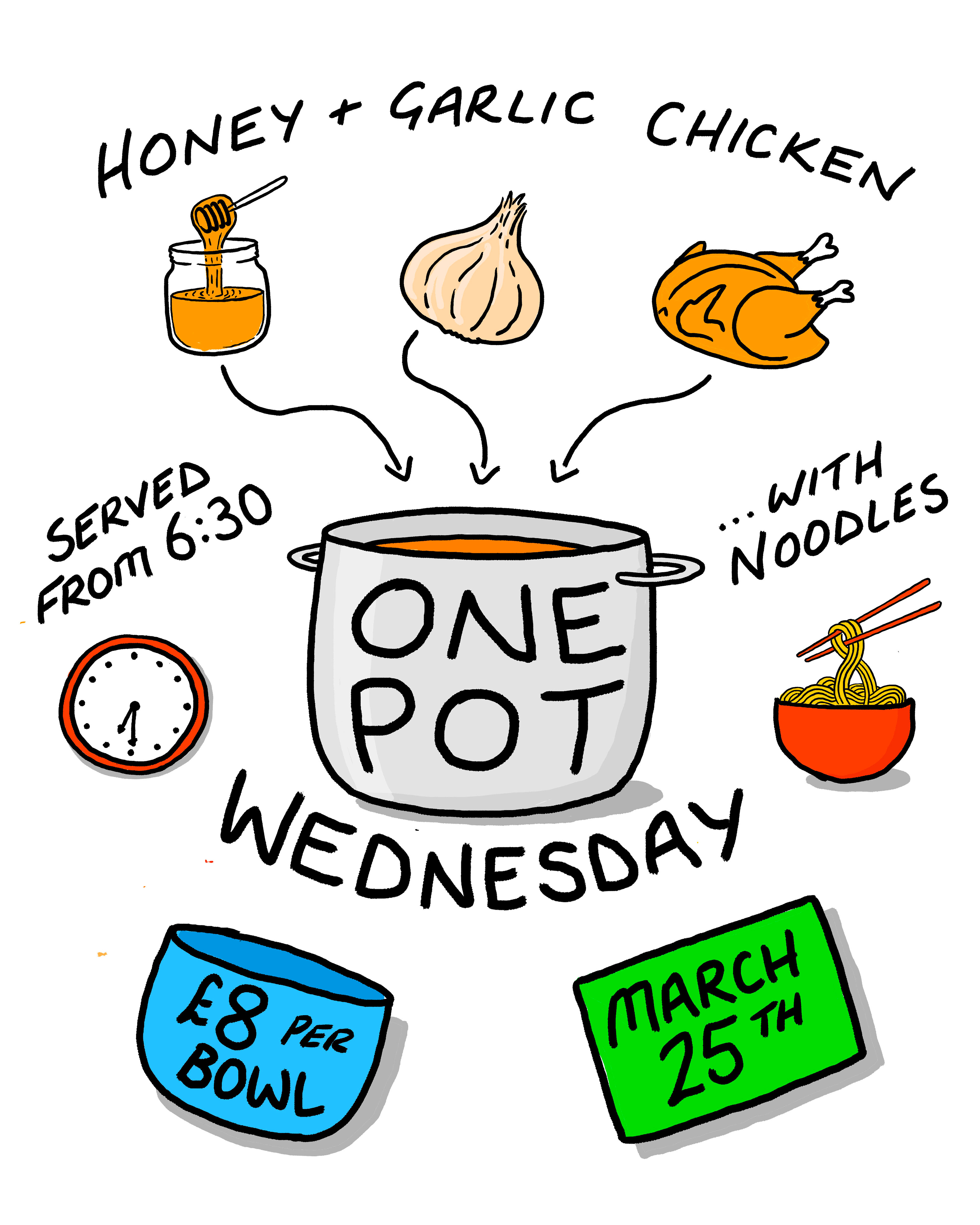 A little flyer for 'One Pot Wednesday' at the